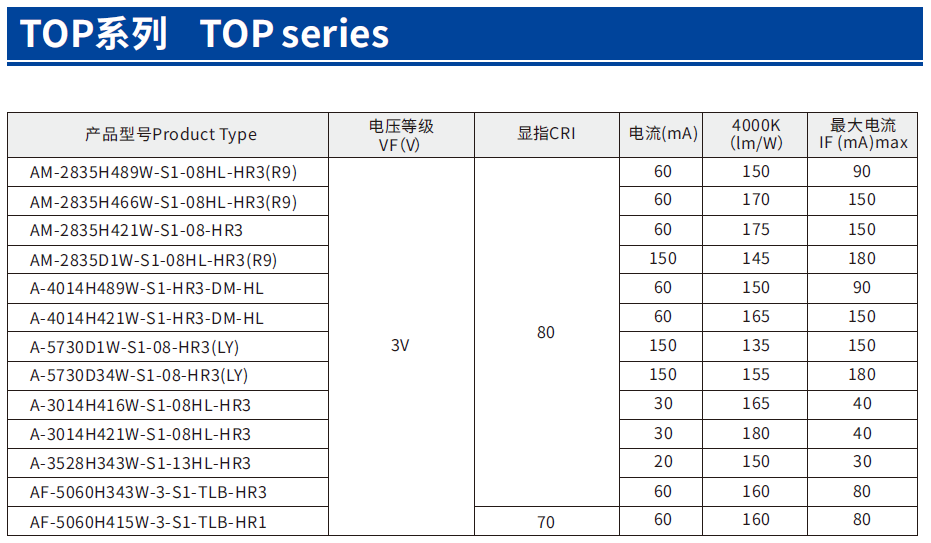 經典TOP封裝全系列,適配各類照明用途,光效穩定。