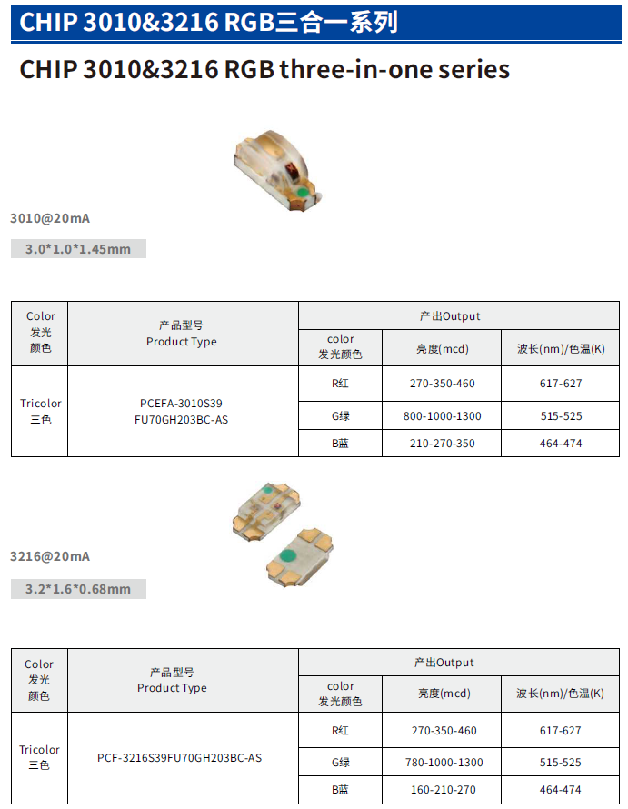 CHIP 3010 & 3216 RGB三合⼀系列