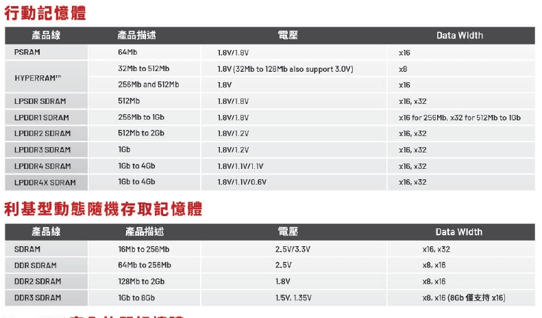 華邦的 DRAM 產品主要分為三大核心類別:利基型 DRAM (Specialty DRAM)、行動記憶體 (Mobile DRAM) 以及 虛擬靜態隨機存取記憶體 (Pseudo-SRAM)。